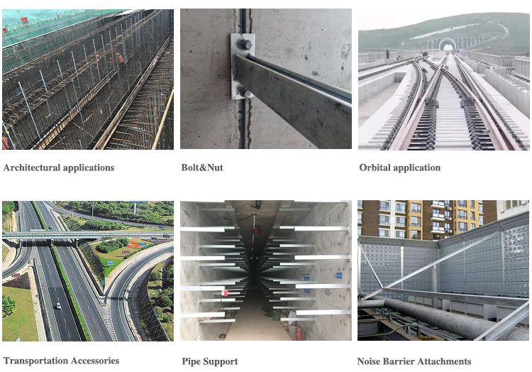 Cast in the channel is a commonly used embedded part, which can be used to install curtain walls, precast concrete panels, pipe support systems, etc. C-shaped grooves can also be used to make C-shaped steel. C-shaped steel is a light steel that is widely used in construction, automobiles, ships, and other fields.